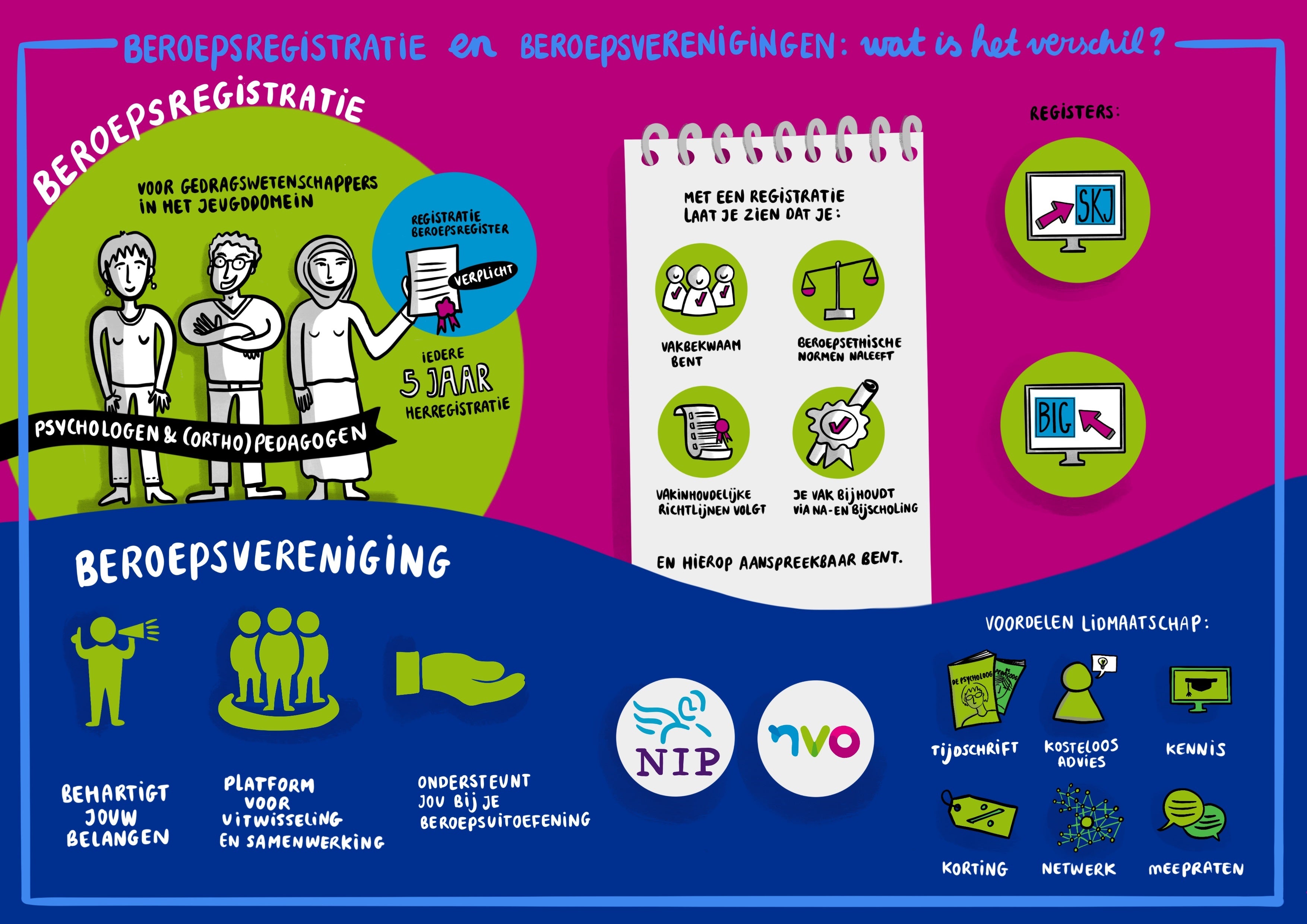U kunt bijvoorbeeld ook lid zijn van de NVO en de registratie bij SKJ aanvragen. Het is voor het aanvragen van een registratie bij SKJ overigens niet noodzakelijk om lid te zijn van de NVO.